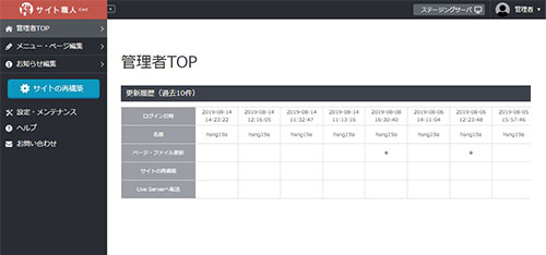 「ログイン」ボタンをクリックし、下のような管理者TOP画面が表示されれば、ログイン成功です。