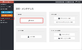 管理者画面左メニューにある「設定・メンテナンス」メニューから「基本設定」ボタンをクリックしてください。基本設定画面が表示されます。
