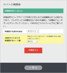 デザインの変更や、新たにページを追加した場合、サイトの再構築を行なうまでホームページには入力内容が反映されません。