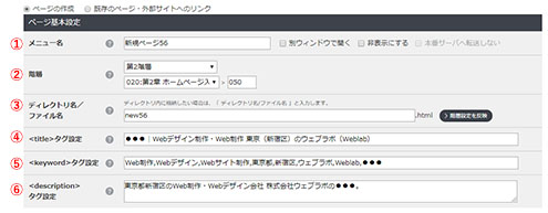 ⑥「<description>タグ設定」 このページの説明を入力します。 (入力例)ホームページをブログのように簡単に作成、更新できるWEBコンテンツ管理システム「サイト職人」
