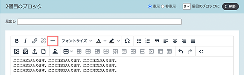 水平線を挿入したい箇所にカーソルを合わせ、「水平線」ボタンをクリックします。