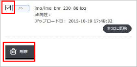 画像一覧から、削除したい画像にチェックを入れて、「削除」ボタンをクリックしてください。